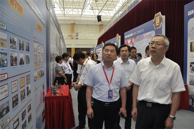 学院院长张龙与人社部副部长汤涛在中国技工教育图片展主题活动现场交流